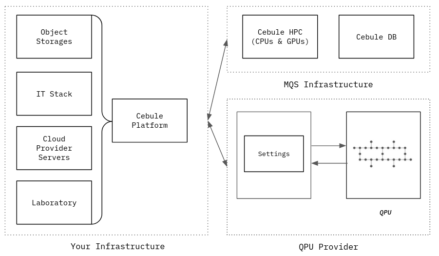 Cebule Database: Deploy the Cebule DB schema for storing your own data and external connect to multi-terrabyte large datasets hosted on MQS infrastructure. In this way you save storage space with read/request public open access data while keeping your own internal data secure.